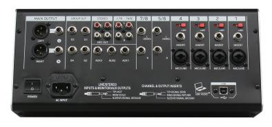 1、輸入通道:4路平衡式XLR、TRS復(fù)合卡儂麥克風(fēng)輸入通道,2組4路TRS立體聲輸入通道,2組4路RCA立體聲輸入通道 2、麥克風(fēng)輸入通道:4路平衡式XLR、TRS復(fù)合卡儂麥克風(fēng)輸入接口 3、立體聲TRS輸入:2組4路TRS立體聲輸通道 4、立體聲蓮花輸入:2組4路RCA立體聲輸入通道 5、錄音輸出:2組4路RCA立體聲錄音輸出通道 6、幻象電源:內(nèi)置48V幻想電源供電,每通道帶獨(dú)立開關(guān) 7、低切濾波器:4路單聲道平衡式XLR麥克風(fēng)輸入設(shè)有100Hz,18dB/倍頻程斜率低切濾波器開關(guān)