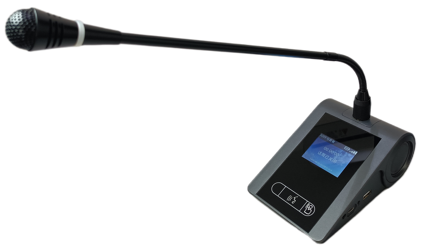1.高清2.4寸IPS全彩顯示屏,顯示話筒狀態(tài),當(dāng)前時間日期顯示,發(fā)言時間顯示,支持發(fā)言計(jì)時,定時發(fā)言,信號強(qiáng)度和電池電量等信息清晰顯示。